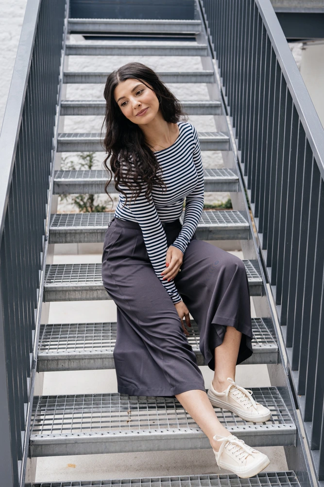 Nadčasové bambusové tričko upnutějšího střihu s lodičkovým výstřihem.