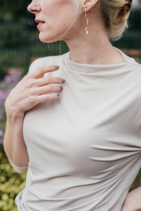 Nadčasové bambusové tričko volnějšího střihu s přinechaným stojáčkem.