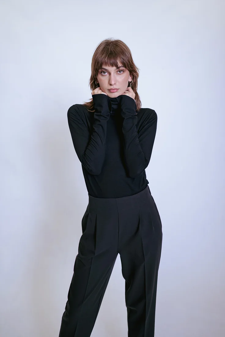 Černý top z bambusové viskózy dobře kombinovatelný se sukní, kalhotami nebo třeba pod sako.
