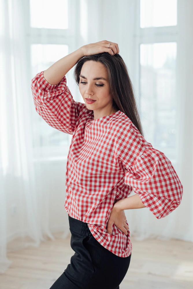 Červeno-bílá kostkovaná halenka Coco – Reparáda