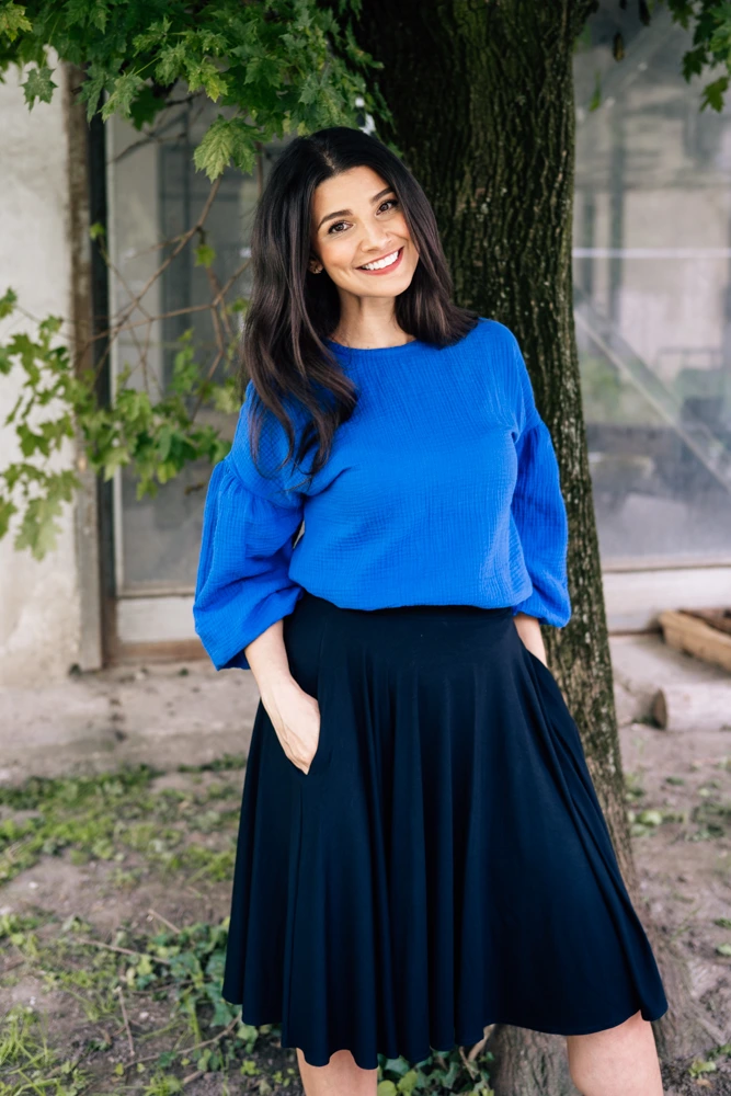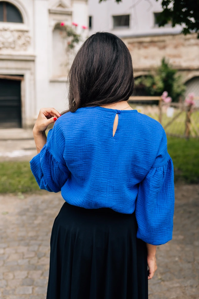 Královsky modrá mušelínová halenka Coco – Reparáda