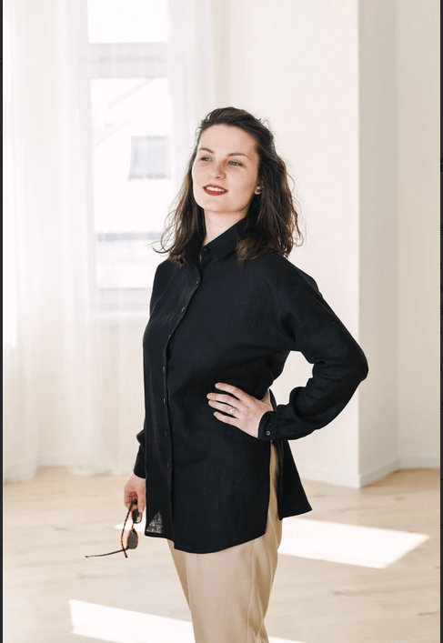 Vzdušná lněná košile volnějšího střihu. Must-have letní kousek do kapsulového šatníku.