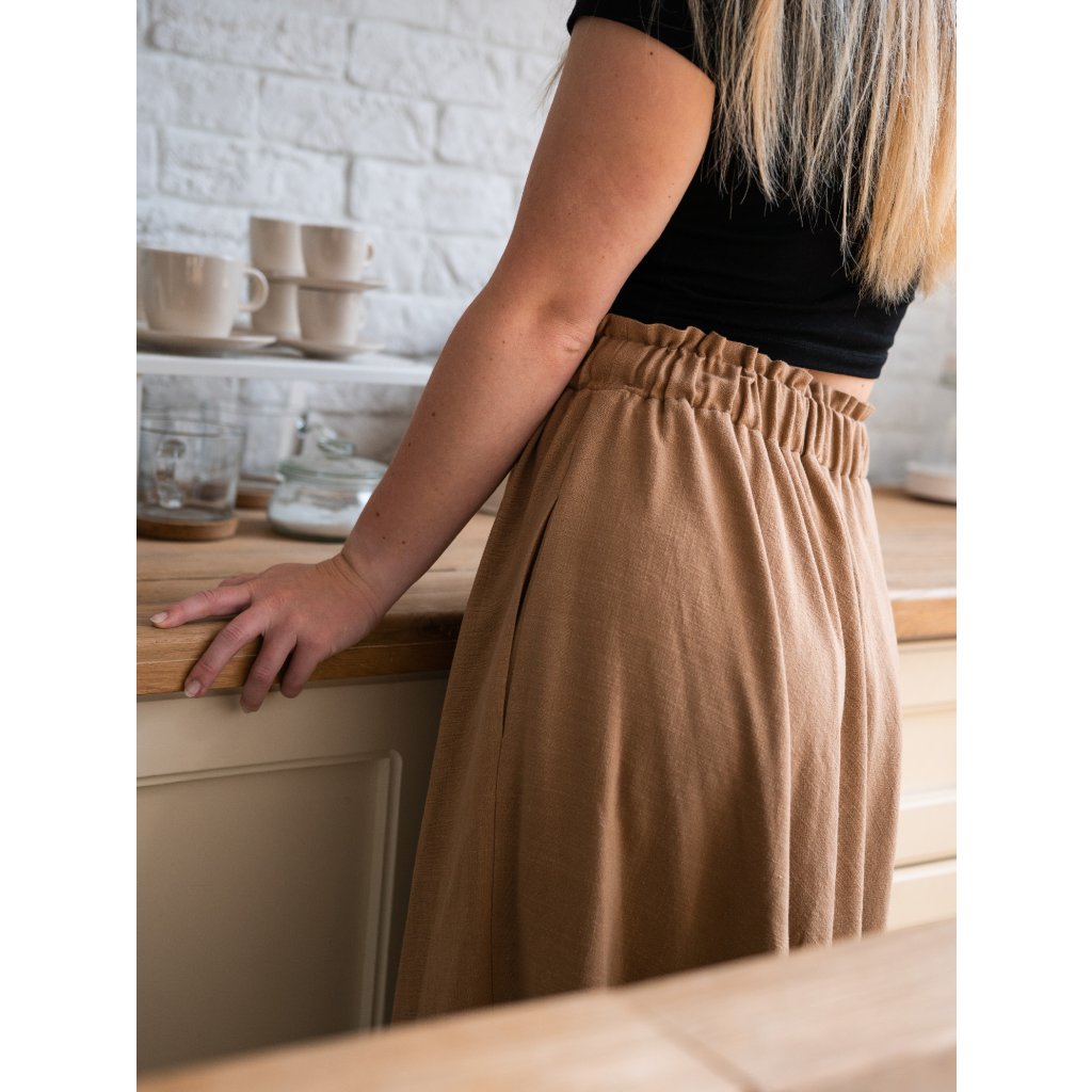 Krásná splývavá midi sukně z přírodního prémiového materiálu ze směsi viskózy a lnu.