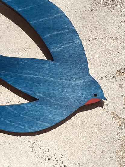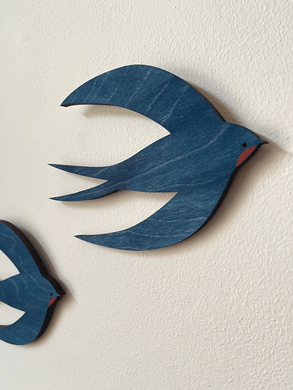 Modrá dřevěná vlaštovka na zeď – PI-HA