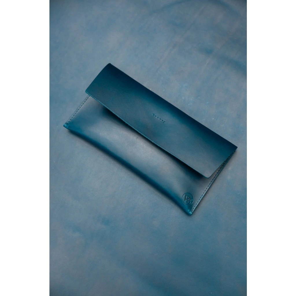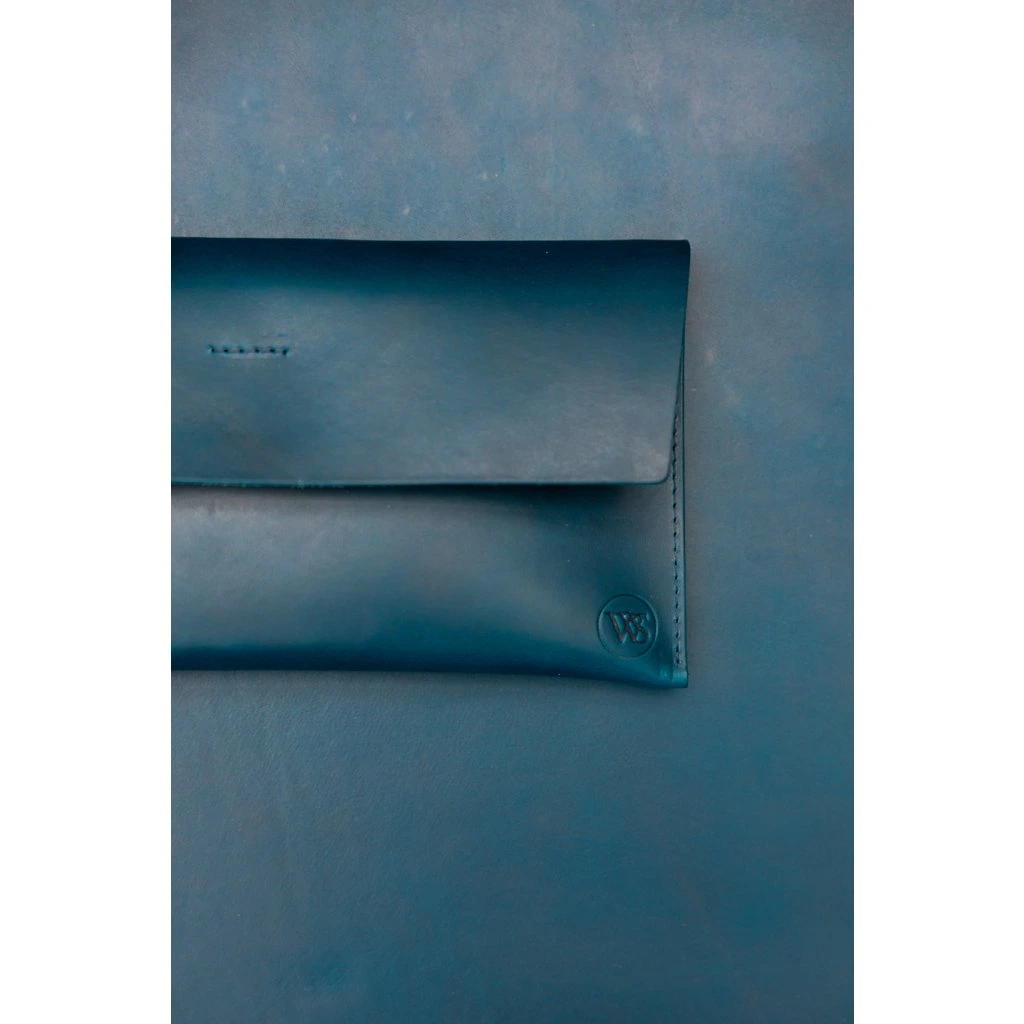 Modré kožené hranaté psaníčko – Wood Style