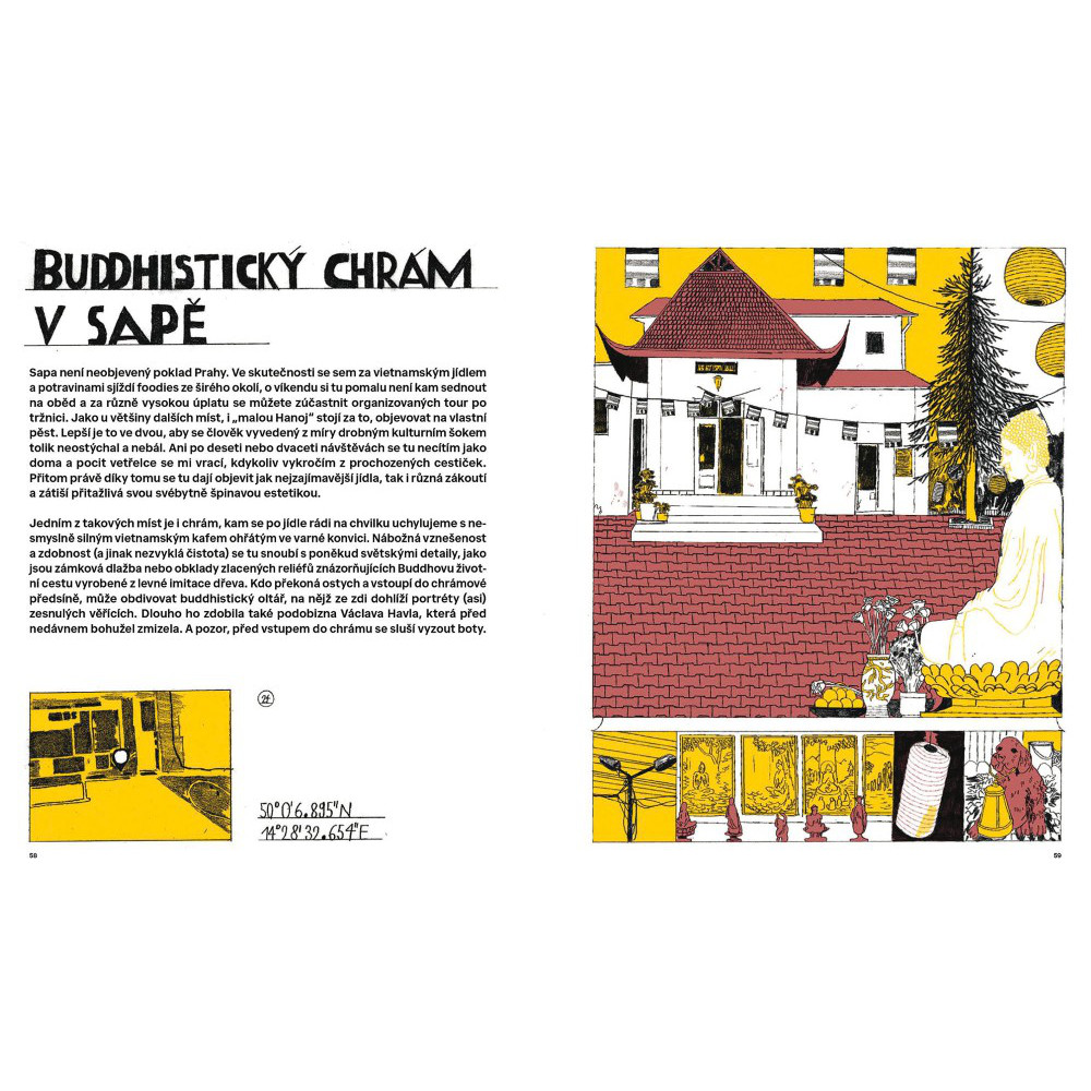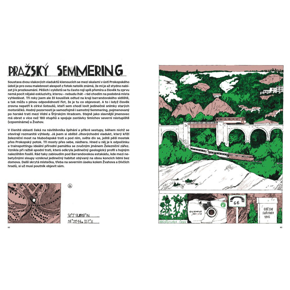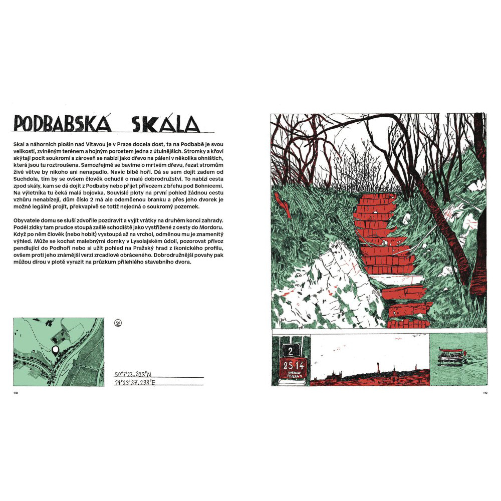 Originální kreslený bedekr po netradičních místech hlavního města. Z rezidenčních čtvrtí na industriální periferii a z přírodních památek zase zpátky do samého historického centra. Tato kniha vás vezme na procházky a výlety do míst, kde jste nejspíš nikdy nebyli, možná je dosud ani neznali. Kromě okrajových částí, nezřídka ležících ladem a divoce bujících, vás autor provede i periferií vnitřní, tedy místy, která máme téměř pod nosem, ale na našich pravidelných rutinních pochůzkách je přehlížíme. 496 kilometrů čtverečních se může změnit v kouzelnou zahradu, kde za každým plotem, křovím nebo rozbořenou zdí čekají nové poklady… Doslov Radan Haluzík a Epos 257.