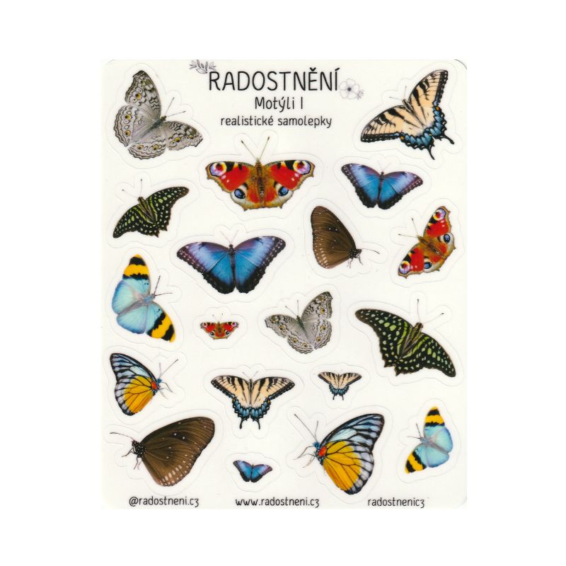 Nádherný samolepkový arch plný motýlů pro Vaše bullet journaly, deníky a diáře. Na velmi kvalitní transparentní fólii jednotliví motýlci doslova ožívají.