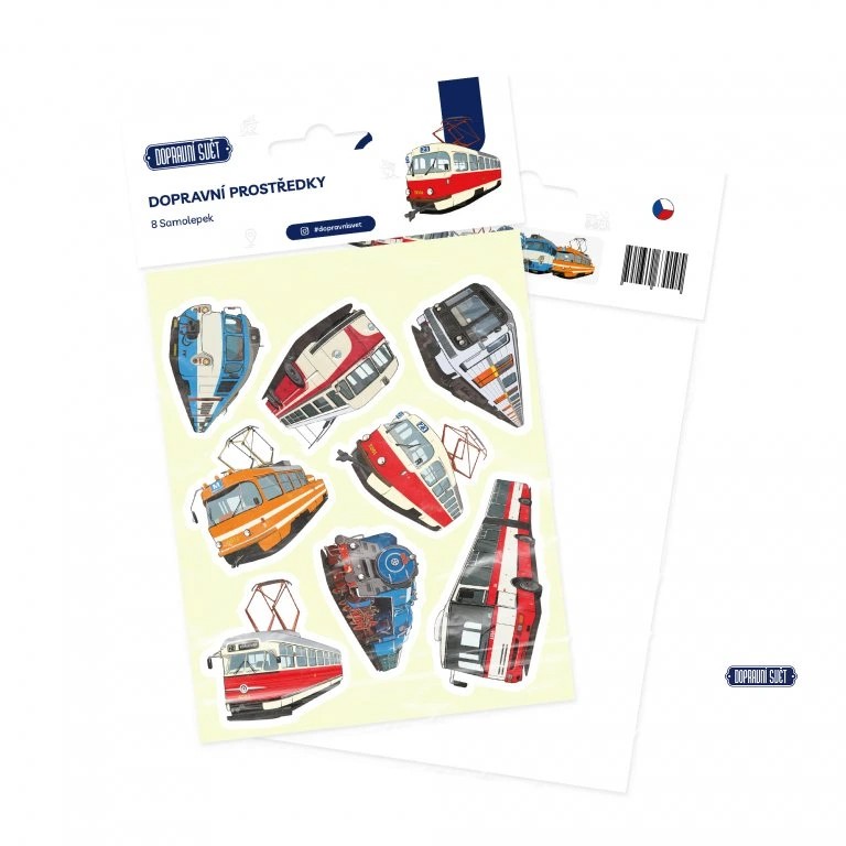 Tahle jedinečná sada samolepek přináší výběr toho nejlepšího z historie městské i dálkové dopravy – od majestátní lokomotivy 498.0 Albatros, přes elektrickou jednotku ČD 451, až po legendární soupravu metra 81–71.