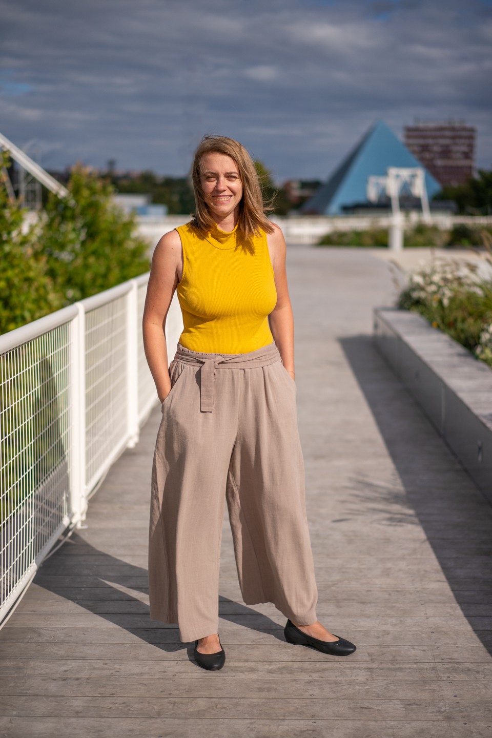 Ikonické culottes v prodyšné letní verzi. Střih do pasu a zkrácená délka širokých nohavic vytváří krásnou siluetu.