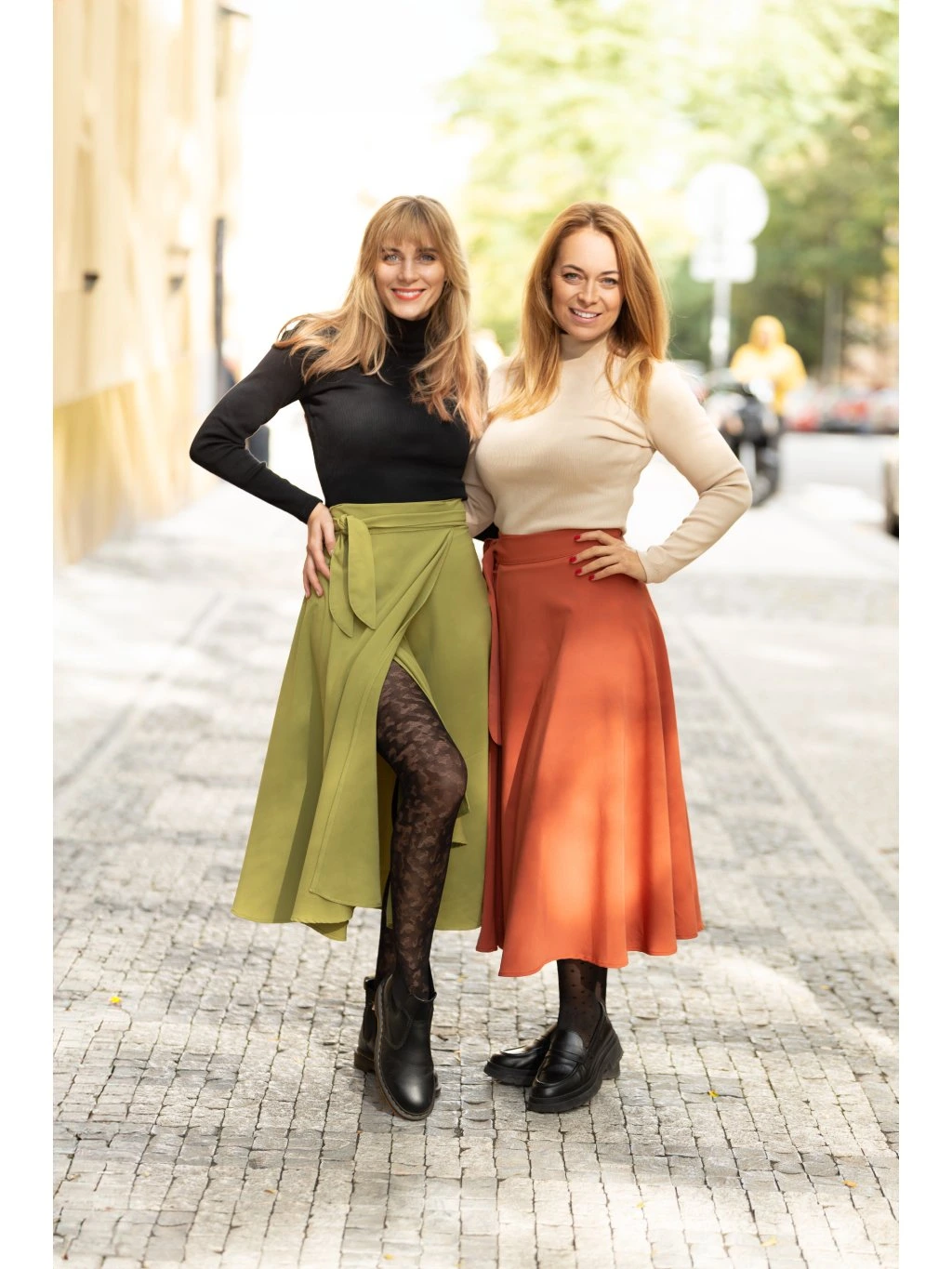 Zavinovací sukně ze splývavé viskózy, která krásně zvýrazní Váš pas a vyzdvihne ženské křivky.
